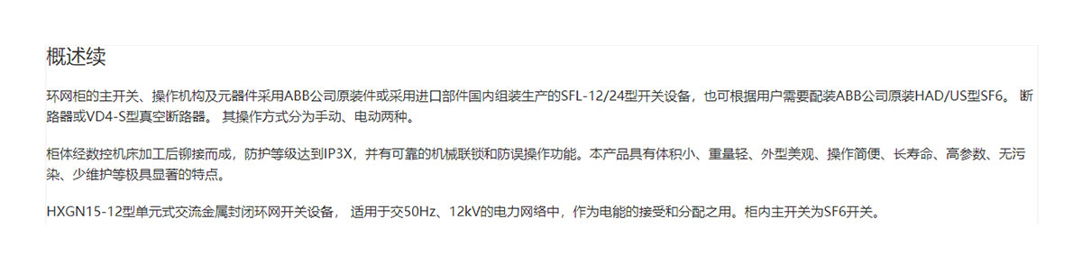 HXGN15-12型單元式交流金屬封閉環(huán)網(wǎng)開關(guān)設(shè)備 (以下簡(jiǎn)稱環(huán)網(wǎng)柜) 是我們?cè)谝M(jìn)國(guó)外技術(shù)并按照國(guó)內(nèi)農(nóng)電及城網(wǎng)改造之要求而自行設(shè)計(jì)、研制成功的新一代高壓電器產(chǎn)品。各項(xiàng)技術(shù)性能指標(biāo)全I(xiàn)EC62271-200:2003和GB3906標(biāo)準(zhǔn)。